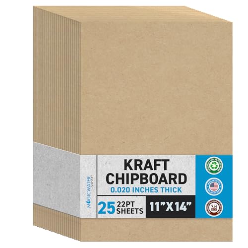 View full detailsMagicWater Chipboard Sheet for DIY Projects - 11x14 Inch - 25 Pack - 22 pt - Heavy Duty Kraft (0.020 Inch Thick) Paperboard, for Scrapbooking, Books, Picture Frame Backing, Arts Project & Crafts