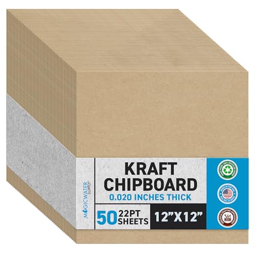 View full detailsMagicWater Chipboard Sheet for DIY Projects - 12x12 Inch - 50 Pack - 22 pt - Heavy Duty Kraft (0.020 Inch Thick) Paperboard, for Scrapbooking, Books, Picture Frame Backing, Arts Project & Crafts