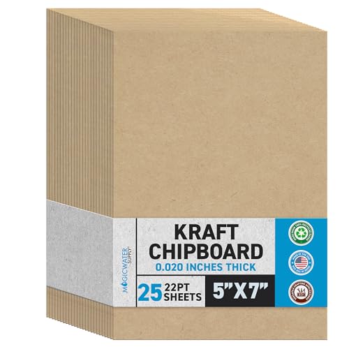 View full detailsMagicWater Chipboard Sheet for DIY Projects - 5x7 Inch - 25 Pack - 22 pt - Heavy Duty Kraft (0.020 Inch Thick) Paperboard, for Scrapbooking, Books, Picture Frame Backing, Arts Project & Crafts