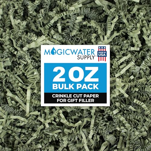 View full detailsMagicWater Crinkle Cut Paper for Gift Baskets - 2 Oz - Army Green - Perfect for Shredded Paper Filler, Basket Filler, Gift Boxes, Bridesmaid Gifts, Christmas Stuffers & More - Ideal for All Occasions