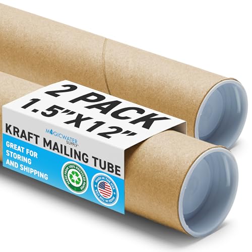 View full detailsMagicWater Supply Heavy Duty Mailing Tubes - Durable Cardboard for Shipping, Storing & Protecting Posters Artwork Documents and Blueprints with Secure End Caps - 12 Pack 2 in x 18 in Kraft - US Made.