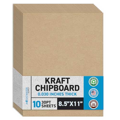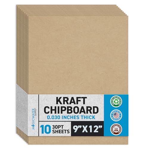 View full detailsMagicWater Chipboard Sheet for DIY Projects - 9x12 Inch - 10 Pack - 30 pt - Heavy Duty Kraft (0.030 Inch Thick) Paperboard, for Scrapbooking, Books, Picture Frame Backing, Arts Project & Crafts