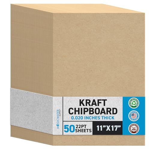 View full detailsMagicWater Chipboard Sheet for DIY Projects - 11x17 Inch - 50 Pack - 22 pt - Heavy Duty Kraft (0.020 Inch Thick) Paperboard, For Scrapbooking, Books, Picture Frame Backing, Arts Project & Crafts